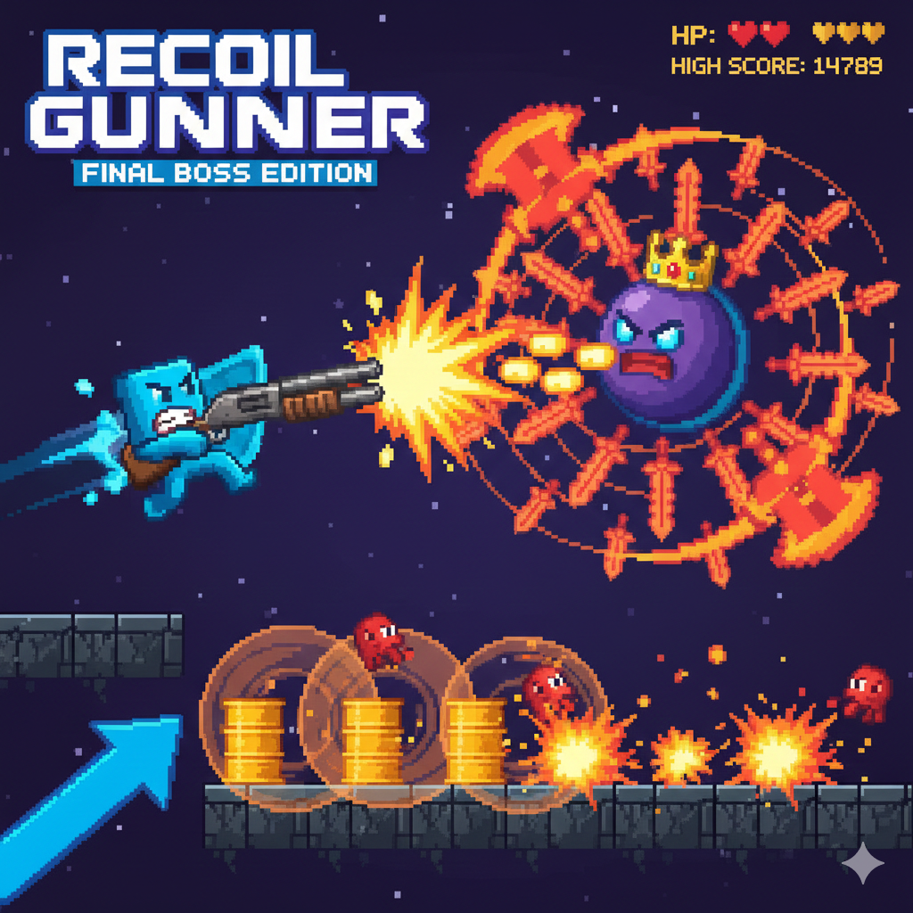 Recoil Gunner is a fun highscore based game where you have a gun to shoot you up in the air and have to kill enemies for points. have fun with this little project of mine!
